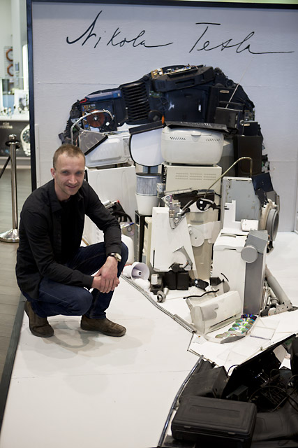 Patrik Proško se svou intalací tváře Nikoly Tesly ze starých elektrospotřebičů
